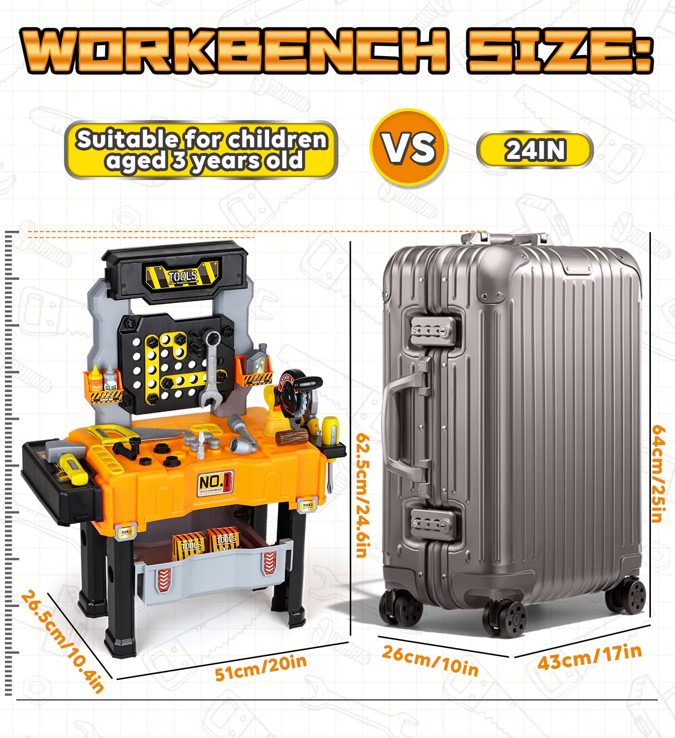 - Perfekte Geschenk für kleine Baumeister: Es ist ein großartiges Lernspielzeug, das Kinder ermutigen kann, Erwachsene zu imitieren, um Werkzeuge zu benutzen, am besten für Kleinkinder, um Spiele vorzutäuschen und ihre Neugierde zu befriedigen. Ideal für Geburtstagsgeschenke für Kleinkinder oder Urlaubsgeschenke, inspirieren Sie Freude und fördern Sie die Liebe zum Bauen in Ihrem jungen Ingenieur, Mechaniker oder Schreiner